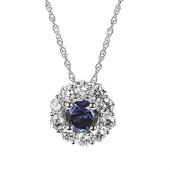 Eco-Brilliance® 1.20Tgw. Lab-Created Diamond & Created Sapphire Halo Pendant In 14K Gold